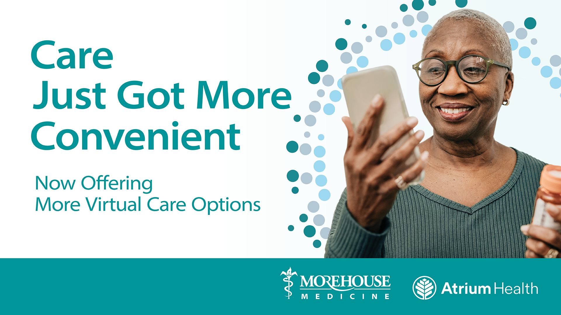 In partnership with Atrium Health, Morehouse Medicine helps you get convenient, trusted care when you need it. Patients of all ages can access Atrium Health’s virtual urgent care and virtual primary care services from home, work or anywhere. All you need is a smartphone, tablet or computer.
